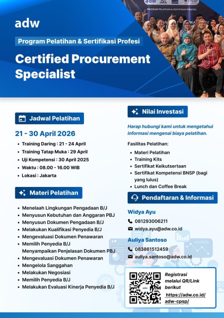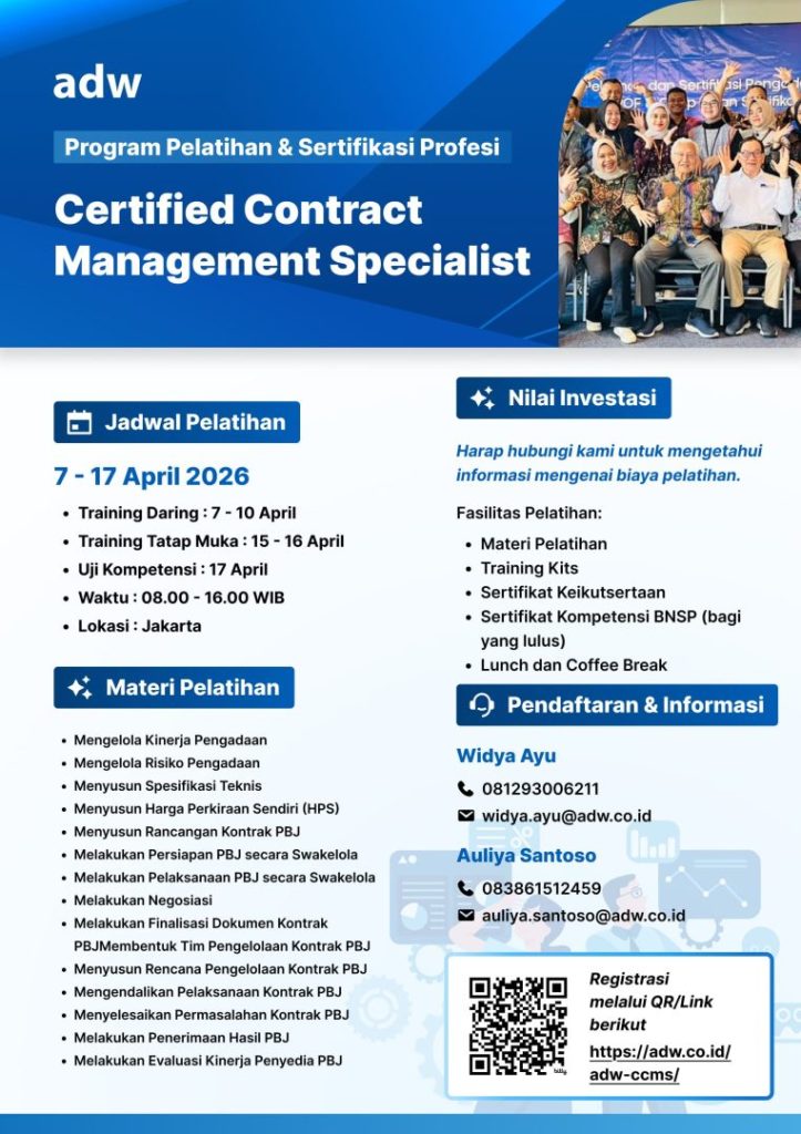 Salam Pengadaan! Dalam praktik pengadaan, pengelolaan kontrak bukan hanya soal administrasi, tetapi tentang bagaimana memastikan kinerja, mengelola risiko, dan menciptakan nilai tambah bagi organisasi. Tanpa pengelolaan kontrak yang tepat, potensi permasalahan, ketidaksesuaian kinerja, hingga risiko kerugian dapat terjadi di berbagai tahap pelaksanaan. Karena itu, kemampuan contract management yang komprehensif dan strategis menjadi hal yang sangat […]